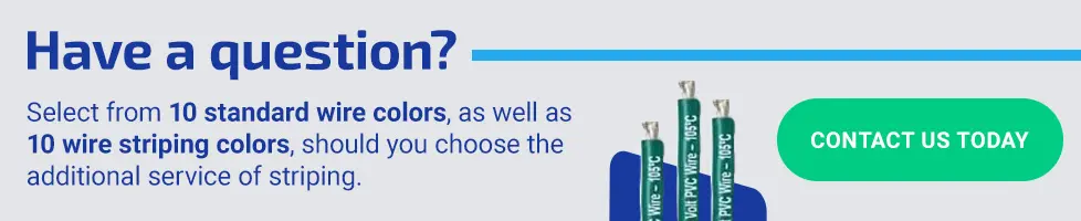 You can choose from hook up wire insulated with either PVC or high-temperature insulation to achieve the voltage and temperature capacity you desire for your wiring. Select from 10 standard wire colors, as well as 10 wire striping colors, should you choose the additional service of striping.